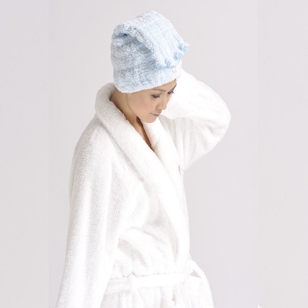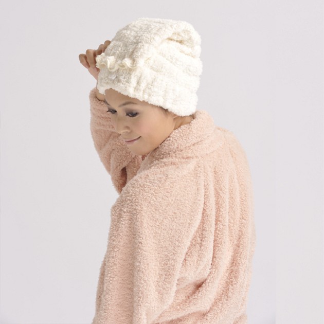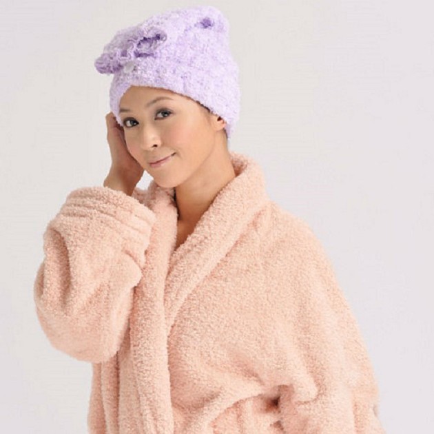 洗髮後...吸水性良好的超細纖維乾髮帽迅速吸乾頭髮上的水份,